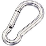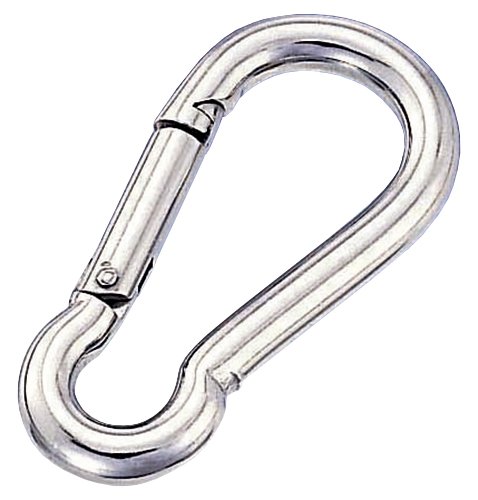 ステンレス製スナップフックB型、線径5mm、全長53mm、使用荷重60kgfです。耐久性に優れ、アウトドアやDIYに最適。錆に強く、長期間使用可能な高品質製品です。