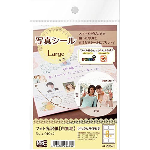 エーワン 写真シール フォト光沢紙 8面 5シート 29623は、高品質の光沢仕上げで写真や画像を鮮やかに印刷できるシールです。8面に分かれたシートで、貼り付けやすく、個別のシールとして利用可能。