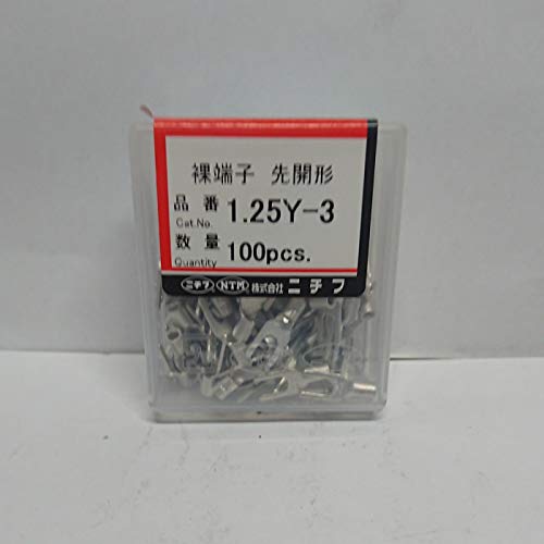 ニチフ1.25Y-3は、銅線用裸圧着端子(Y形)の先開形で、100個入り。安全で確実な接続を提供します。幅広い用途に対応し、耐久性に優れています。