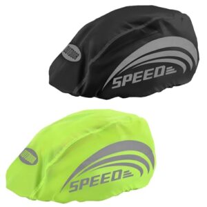 ヘルメットカバー 防水 自転車 ヘルメットカバー 反射 防水 防風 防塵 反射テープ 夜間安全 調整可能 2個 サイクリング ヘルメット カバー 黒 蛍光グリーン
