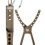 第一精工のフィッシュグリップ「ガーグリップMCカスタム」はダークアースカラー。フィッシングプライヤー機能も備え、使いやすさと耐久性が魅力の釣り用具。魚の測定や持ち運びに最適です。