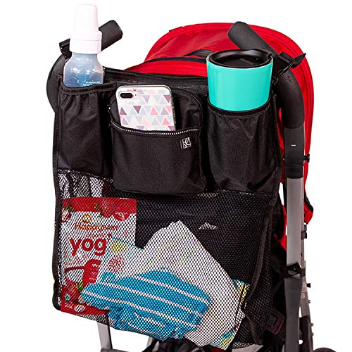 J.L. Childressのベビーカー用バッグは、大容量で多機能な小物入れ。装着したまま折りたたみ可能で、便利なドリンクホルダー付き。ディズニーデザインもあり、収納に最適。