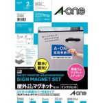 エーワン マグネットラベル屋外用 UVカバー付き光沢フィルム。インクジェット対応、A4サイズ、2セット入り。耐候性に優れ、屋外でも使用可能。
