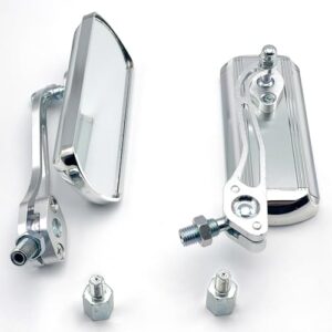 LEXOR クラシック アルミ スクエア ミラー 汎用 10mm 8mm アダプター2個付き 360度回転 調整 ダックス ジョルノ カブ PCX CBR Z125 GSX MSX KLX シルバー