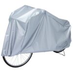 アストロ自転車カバーは撥水加工された厚手の丈夫な製品。大切な自転車を直射日光、雨、雪から守ります。原付兼用で27インチまで対応、シルバー色。雨避け、盗難防止、風飛び防止紐、着脱簡単、前後ゴム入り。