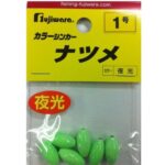 フジワラ(FUJIWARA)のカラーシンカー・ナツメ1号は、夜光タイプで暗い環境でも視認性が高いです。サイズは1号で、様々な釣りスタイルに対応。耐久性も良く、長時間の使用が可能です。