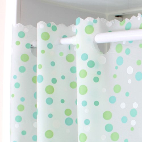 aiika 透けにくい浴室用水玉柄遮像カフェカーテンは、幅140cm、丈60cmのグリーン色のカーテンです。おしゃれな水玉柄でプライバシーを守りつつ、明るさを取り入れます。