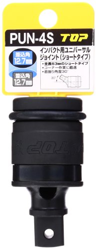 トップインパクトレンチ用ユニバーサルジョイントショートタイプ。差込角12.7㎜、首振り30°。燕三条の高品質日本製で、耐久性と操作性に優れています。