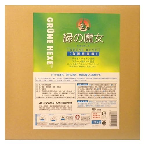 【大容量】緑の魔女キッチンは、業務用18kgの食器用洗剤です。強力な油汚れを落とし、環境に優しい成分を使用。手肌にも優しく、食器を清潔に保つ効果があります。