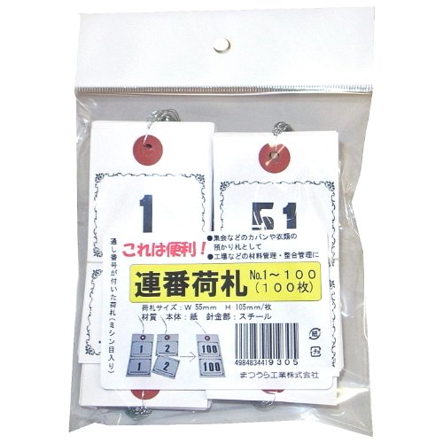 まつうら工業 連番荷札 NO.1-100 100枚の製品情報