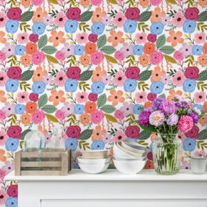 VEELIKE 壁紙 花柄 ピンク ボタニカル 貼るだけ壁紙 リメイクシート かべかみ クロス のりつき はがせる 防水 耐熱 カッティングシート ウォールステッカー リフォーム ふすまに貼れる wallpaper PVC DIY インテリア 補修 装飾 厚手 よごれ防止 トイレ キッチン 天井 天板 ガスコンロ 子ども部屋 襖 和風 白 北欧 おしゃれ 44.5CMx3M