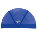 Speedo(スピード)のユニセックス水泳用ロゴ入りメッシュキャップ。通気性に優れ、快適なフィット感を提供。カラーはブルー、サイズはL。水中でのパフォーマンス向上をサポート。