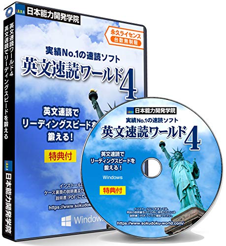 英文速読ワールド4は、初級から上級まで対応した英語速読トレーニングソフトです。特典付きの頭脳王シリーズで、効率的に読解力を向上させることができます。