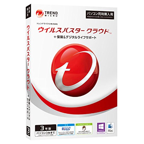 トレンドマイクロのウイルスバスター クラウド + 保険&デジタルライフサポート 3年版は、Win/Mac対応のCD-ROM版。ウイルス対策に加え、デジタルライフを支援するサービスが含まれている。