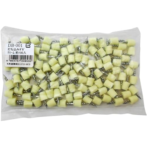 和気産業の打ち込みダボは約100個入りで、本棚の棚受けに最適な金具です。サイズは8×18.5mmで、クリーム色のデザインが特徴です。耐久性もあり、収納力を向上させます。