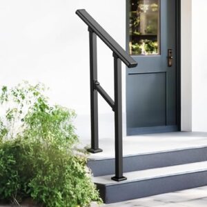 屋外手すり 階段 室内 玄関 階段用 DIY 手摺 ステップ用手すり 角度調整可能 錬鉄製手摺り 廊下サポートロッド 防錆 安全 滑り止め 屋外階段手すり 玄関ポーチ エスカレーター 移行用手すり 高齢者 歩行補助手すり ブラック 2段-67.3CM