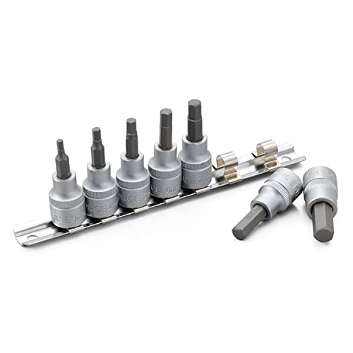 デイトナのバイク用ヘックスソケット7ピースセットは、3/4/5/6/8/10mmの六角ソケットを含み、3/8インチの差込角を持つショートタイプ。ソケットレール付きで収納も便利です。