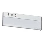ナスタ室名札KS-N26Aは、部屋番号付きのシルバー色で、サイズは75×215.2mm。アルミ製で、3桁のメーカー標準部屋ナンバーを貼り付けて出荷します。