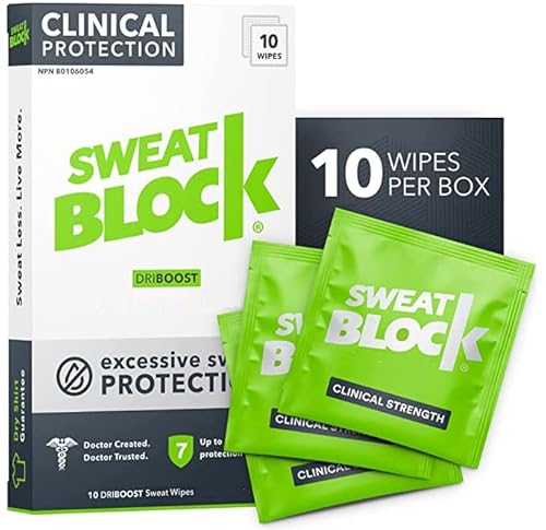 SweatBlock スウェットブロックは、汗を抑えるためのパッドで1箱に10枚入っています。肌に優しい素材で、服の下に貼るだけで効果的に汗をブロックします。持続力に優れ、長時間の使用に最適です。