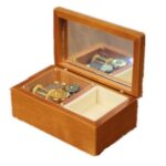 Lily Gardenの木製機械式オルゴールは、華やかなデザインが特徴のジュエリーボックスです。ブルードナウの色合いで、内側には鏡が付いており、貴重品を美しく収納できます。
