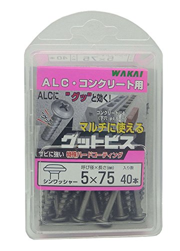 WAKAI ALC・コンクリート用 グットビスは、5X75mmのサイズで40本入っています。耐久性が高く、ALCやコンクリートへの取り付けに最適。適切な工具で簡単に使用できます。