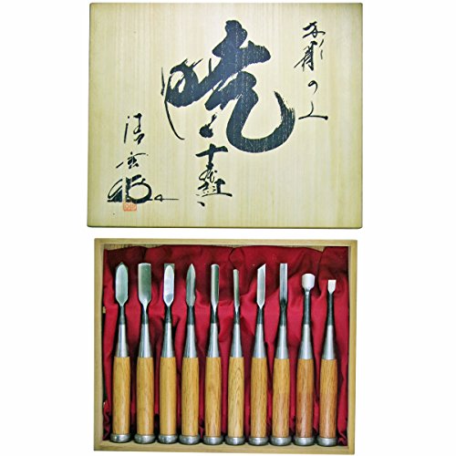 河清刃物工業の暁 叩き木彫のみ10本組は、精密な木彫り作業に最適な工具セットです。高品質な刃物が揃い、様々なデザインや芸術作品に対応可能。耐久性に優れ、手作業の仕上げに最適なアイテムです。