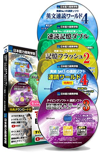 速読術と記憶力を鍛えるCD5枚組。初級から上級まで対応。速読練習、記憶力トレーニング、タイピング練習も含む。習得をサポートする教科書PDF版も付属。