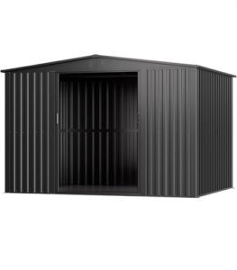 GDFStudio ARBR 物置 屋外 大型 倉庫 大型物置 戸外収納庫 物置 防水/耐侯 収納可能 ガーデン/庭/田畑/農場 頑丈 大容量 スチール 引き戸 補強フレーム付き 窓付き 棚なし ブラック+ホワイト