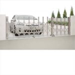 四国化成 バリューアコーA1型両開き親子タイプF300Wは、耐久性に優れたステンレス製の伸縮門扉です。スムーズな開閉が可能で、デザイン性も高く、様々な外観に調和します。