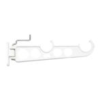 水上金属のファーストスイング物干金物は、横型で380mmのサイズで、ホワイト色です。強度と耐久性に優れ、洗濯物をしっかり支えるデザインが特徴です。