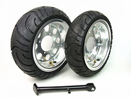 モンキー/ゴリラ用8インチアルミホイールセットです。フロント2.75J、リア3.5Jのサイズで、軽量かつ高耐久。タイヤとスタンドも付属し、カスタムやメンテナンスに最適。