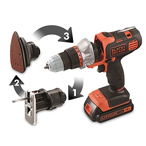 ブラックアンドデッカー(BLACK+DECKER) マルチツール 18V EVO183B1 ドリルドライバー・ジグソー・サンダーのヘッドアタッチメント、ビット11種、バッテリー×2、専用キットボックス付きの製品情報