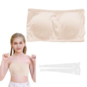 [Tidyworm] チューブトップ キッズ ブラトップ ジュニア スポーツ ブラ カップ付き ずれない ダンス ブラ 透明ストラップ ノンワイヤー キッズ ベアトップ 子供 ベリーダンス インナー ガールズ 下着 小学生 中学生 高校生 女の子 8-15歳