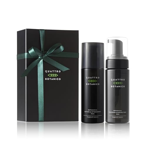 クワトロボタニコのメンズケアセット。ボタニカルローション150mlとフェイスウォッシュ150mlが含まれ、エイジングケアもできるスキンケアアイテム。ギフトラッピング付きでプレゼントにも最適です。