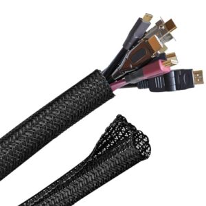 CINECE ケーブル収納スリーブ 配線カバー 配線管理 コード まとめる 編組ケーブルカバー DIY切断可能 PET素材 自動ブロック式 家庭用/オフィス用コードオーガナイザー ペット噛み防止 長さ約3M 直径1.3cm ブラック