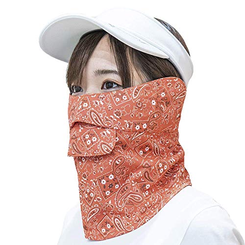 ホワイトビューティーのフェイスカバーC型はUVカット機能があり、日焼け防止に最適なフェイスマスクです。デザインはペイスリーで、カラーは鮮やかなPオレンジ。顔をしっかりガードします。