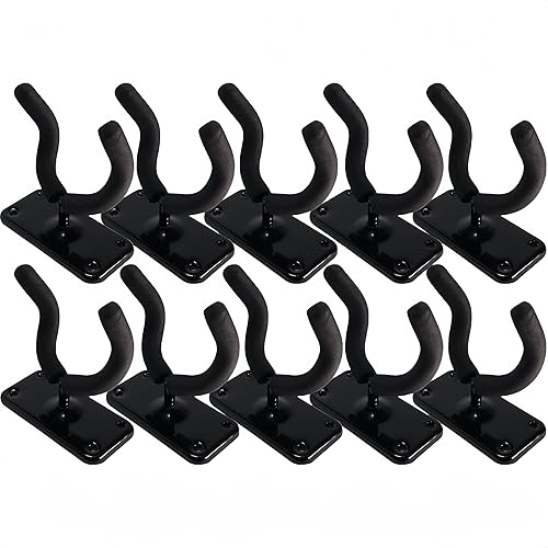 壁掛けフックギターハンガー10個セット。各フックにはネジが付属し、簡単に取り付け可能。安定したホールド力でギターをしっかり支え、部屋のスペースを有効活用できます。