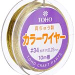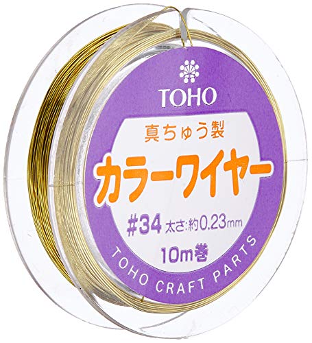 トーホー ワイヤー #34は、太さ約0.23mm、長さ約10mの巻きで、華やかなゴールドカラーが特徴です。多用途に利用でき、クラフトや装飾に最適です。