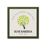 おしゃれなデザイン表札「ウィッシュツリー」Sサイズ。木製で取り付け簡単、吊り下げも可能です。雨ざらしには対応していないため、設置場所に注意が必要です。