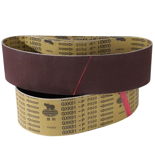 akindouのアルミナ研磨エンドレスベルトセットは、915mmの周長と100mmの幅で、段差なく美しい仕上がりが可能です。80#から800#までのグレードで、ベルトサンダーの交換用として最適です。
