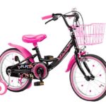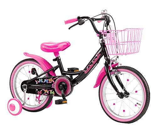 GRAPHIS 補助輪付き子供用自転車 16インチ リボンカラー GR-16Rは、ブラック×ピンクのオシャレなデザインで、安全な補助輪付き。子供の初めての自転車に最適で、楽しいライディング体験を提供します。