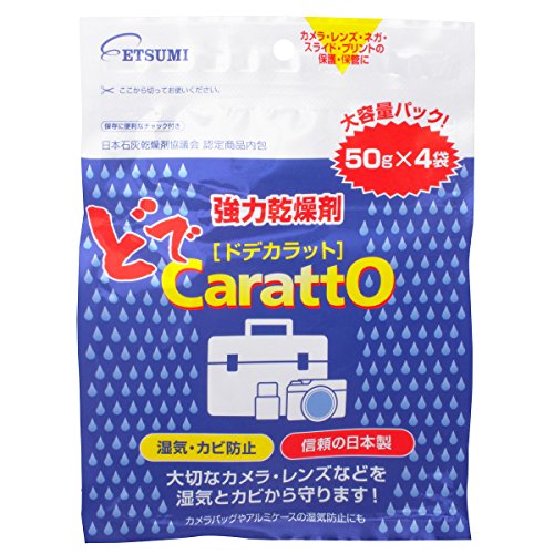 エツミの強力乾燥剤ドデカラットは、50g×4袋入りで湿気を強力に吸収。カメラや電子機器、衣類の防湿に最適。効果的にカビやサビを防ぎ、安心して保管できます。