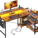 AODK ゲーミングデスクは、120cm幅のL字型デザインで、RGBライトやコンセント付き。棚やモニター台があり、在宅勤務に最適。組立簡単でビンテージスタイル。