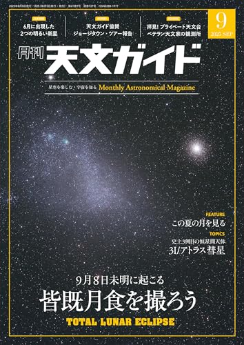 天文ガイド 2025年 9月号は、最新の天文現象や観測情報を特集。初心者から上級者まで楽しめる内容で、星空観察のノウハウや天体イベントの解説が満載です。