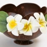 ハワイアン天然ココナッツを使用したスタンド小物入れ。プルメリアデザインで南国風のインテリアにぴったり。誕生日やお祝いのプレゼントとしても最適なハワイ雑貨です。