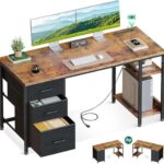 AODK ゲーミングデスクは幅130cmのパソコンデスクで、引き出しとコンセント付き。ラックもあり、勉強やゲームに最適。左右入れ替え対応で、ビンテージデザインが魅力です。
