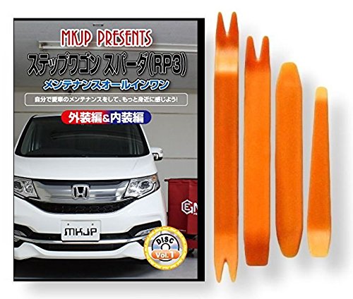 ステップワゴン スパーダ RP3用のメンテナンスDVDと内張り剥がし外装外しの4点工具セット。HONDAホンダ純正品の互換品で、スマホ特典付き。
