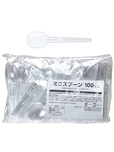 ストリックスデザインの使い捨てミニスプーンは、日本製で業務用の100本セット。サイズは10cmでクリアなデザイン。試食やデザートに最適な使いやすいプラスチック製スプーン。