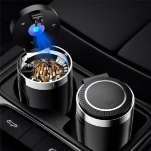 YAVINCOL 車用灰皿 車の灰皿 清潔便利 蓋付き 車のシガー灰皿 密閉性あり 滑り止 LEDライト付き ワンタッチ開閉 臭い漏れ防止 ふた付き 灰捨て簡単 取り外し可能 カー用品 屋外 卓上 汎用(黒)