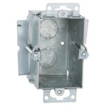 Hubbell-Raco 509 スイッチボックスは、深さ2-1/2インチのプラスターイヤー付きで、ノックアウト式デザイン。古い作業に最適な20個パック。